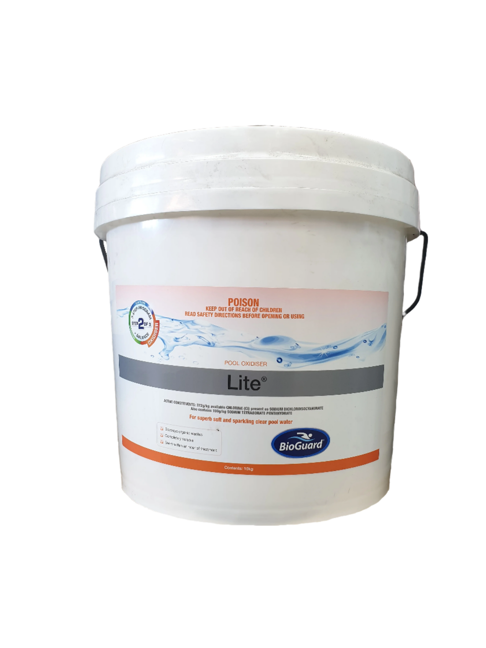 BioGuard® Lite is a patented maintenance oxidiser for chlorinated pools with a unique blend of oxidising and clarifying agents that improves chlorine efficiency.