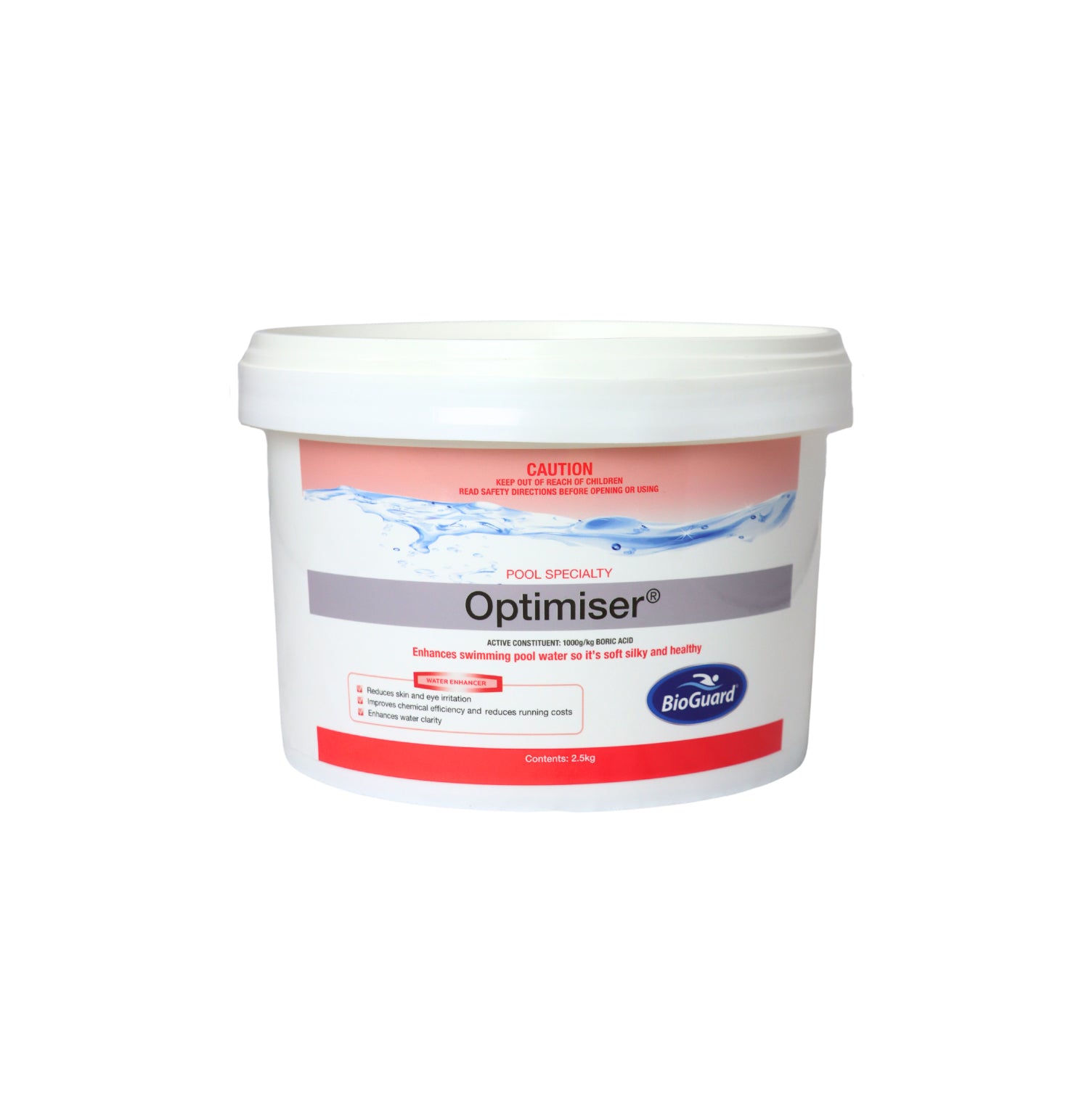 BioGuard Optimiser is a multifunctional granular product that enhances water comfort, increases water clarity, improves the performance of other pool chemicals and suppresses algae growth.
